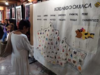 Mariana: Die Ausstellung wird einen Monat dauern und über den gesamten Zeitraum wird es Aktivitäten zu Kampf von Frauen um ihre Rechte geben. Wir nehmen an der Ausstellung mit einer Arbeit teil, die “Bordando Oaxaca” heißt. Das Textil / Die Stickerei wurde durch das gesamte Kollektiv realisiert. Die Arbeit mit Textilien ist wichtig für die Identität der Frauen Oaxacas und Teil ihres Kampfes.