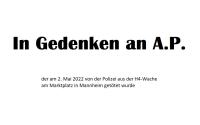 Eine Sendung zum Jahrestag des Todes von A.P. in Mannheim.